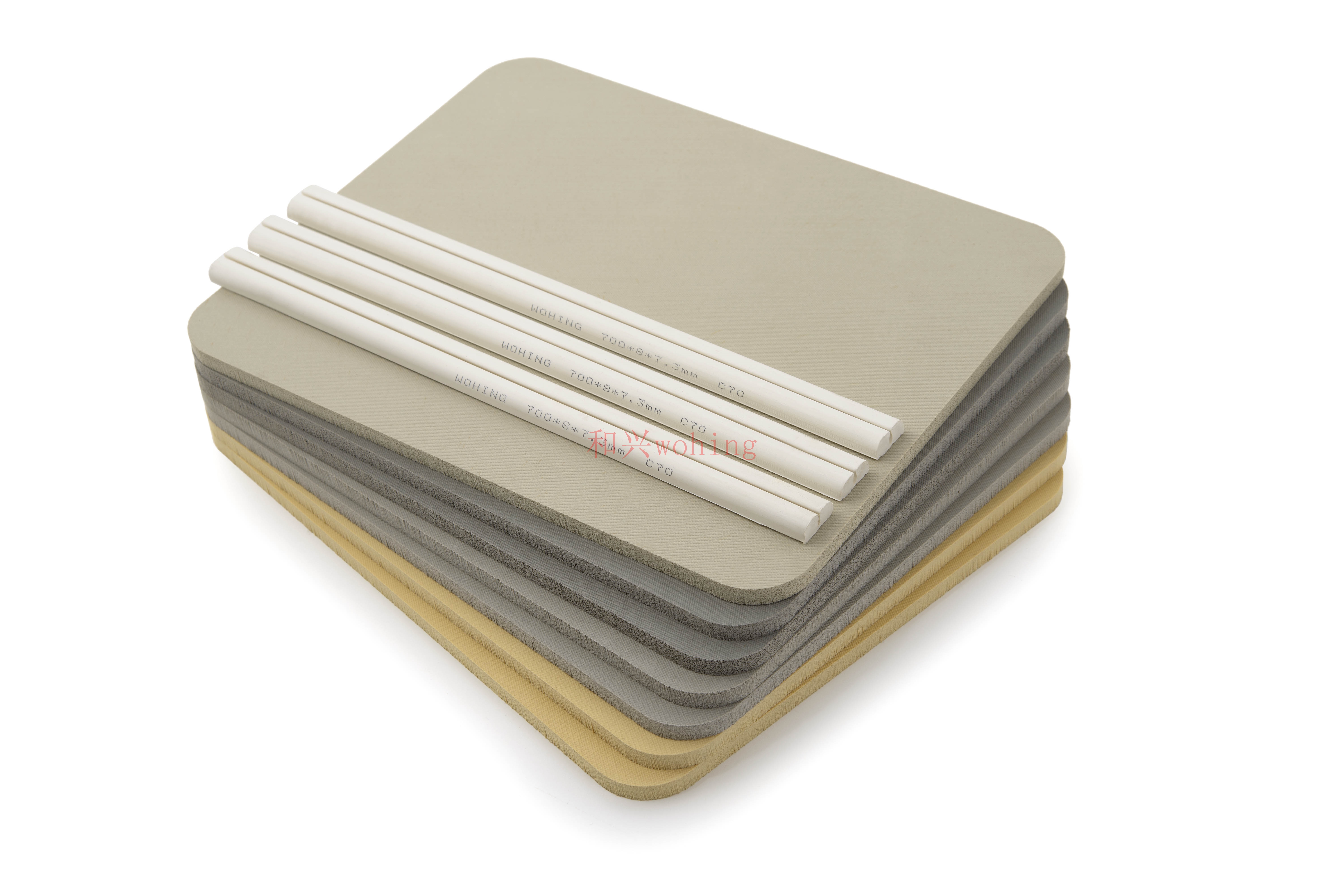 和興公司自行生產(chǎn)不同材質(zhì)(發(fā)泡橡膠、EVA等)各種硬度的彈力膠、為不同模切工藝所選用,提高模切效率,延長模具壽命。