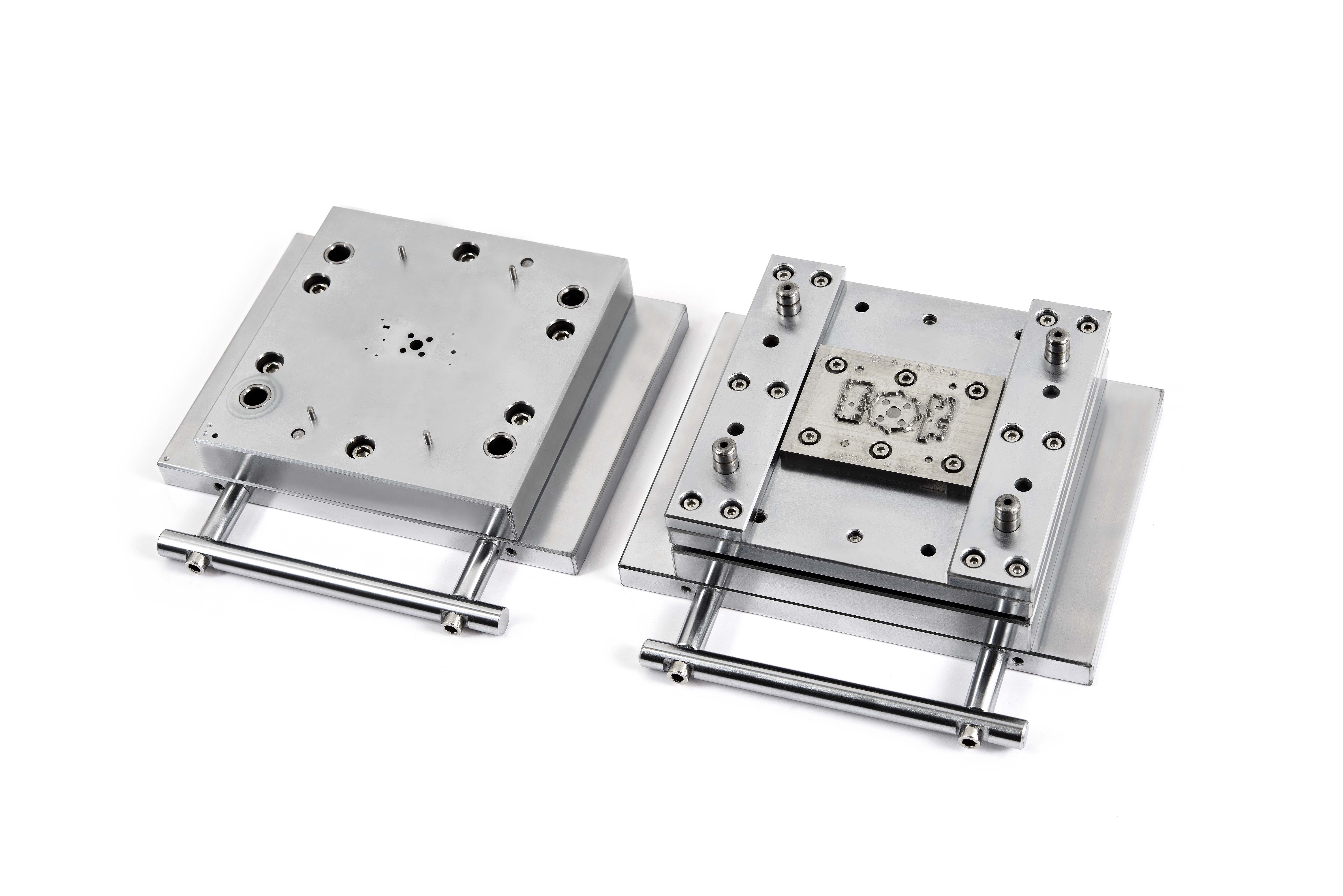 五金沖壓模 可與雕刻模(蝕刻模)相結(jié)合,裁切與沖壓一次完成,尺寸精度高,可達(dá)+/-0.05mm以內(nèi),內(nèi)孔自動(dòng)排廢,可用于小孔套位模切機(jī)上連續(xù)沖切,使用壽命長,可修刀鋒重復(fù)使用。